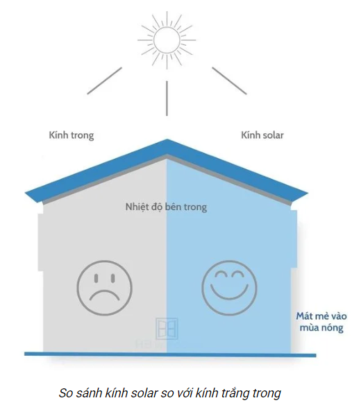- Hạn chế sự truyền nhiệt: Cùng với kính hộp, ưu điểm lớn nhất của kính solar là tránh nóng, giúp giữ nhiệt độ trong nhà luôn mát mẻ. Đặc biệt với khí hậu nóng quanh năm của miền Nam thì loại kính cách nhiệt này là giải pháp chống nóng hiệu quả trong mùa hè oi bức